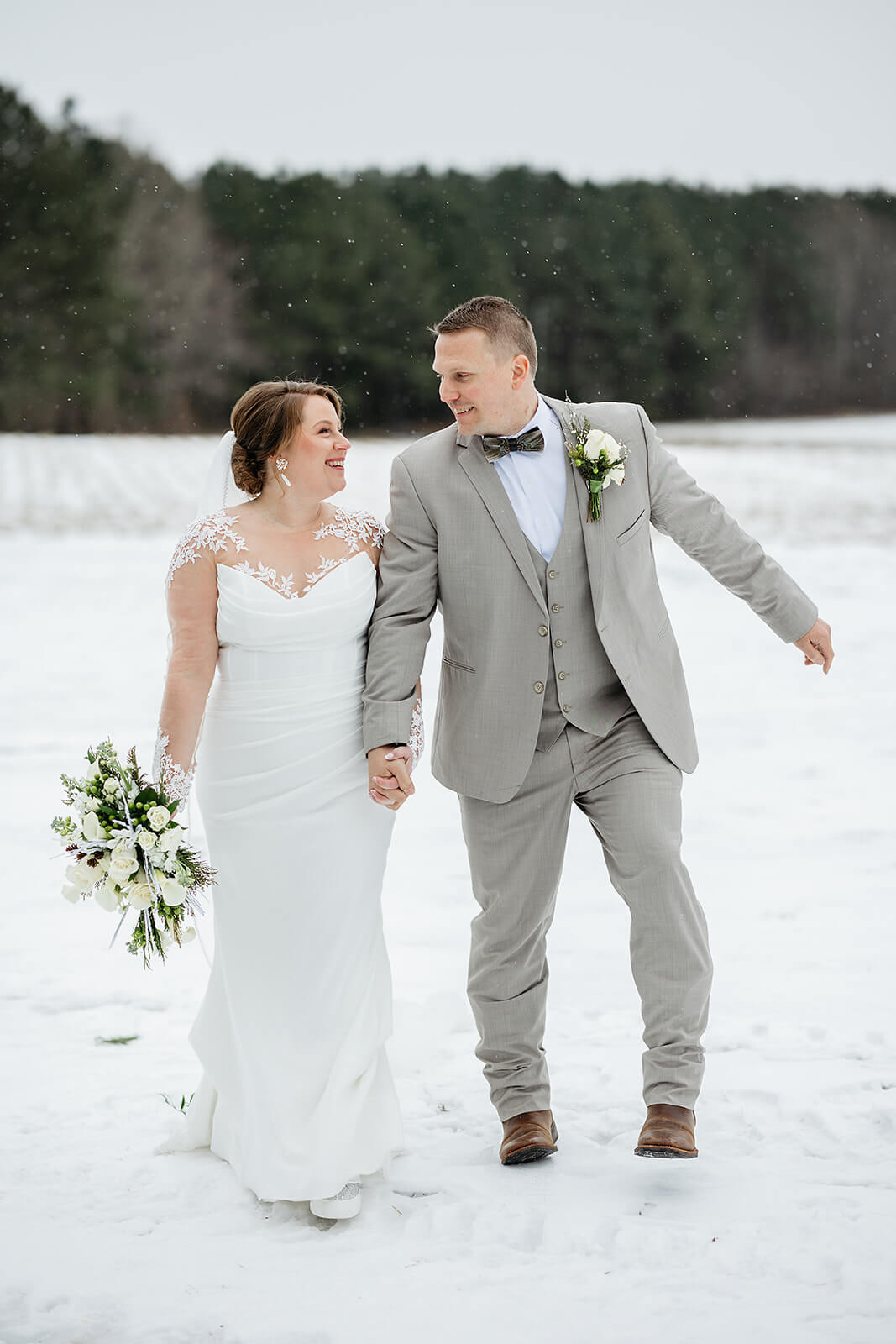 This Church + Parrish View Farms Winter Wedding felt like a real winter wonderland. The snow covered everything in the softest way and made the whole property feel calm and peaceful.