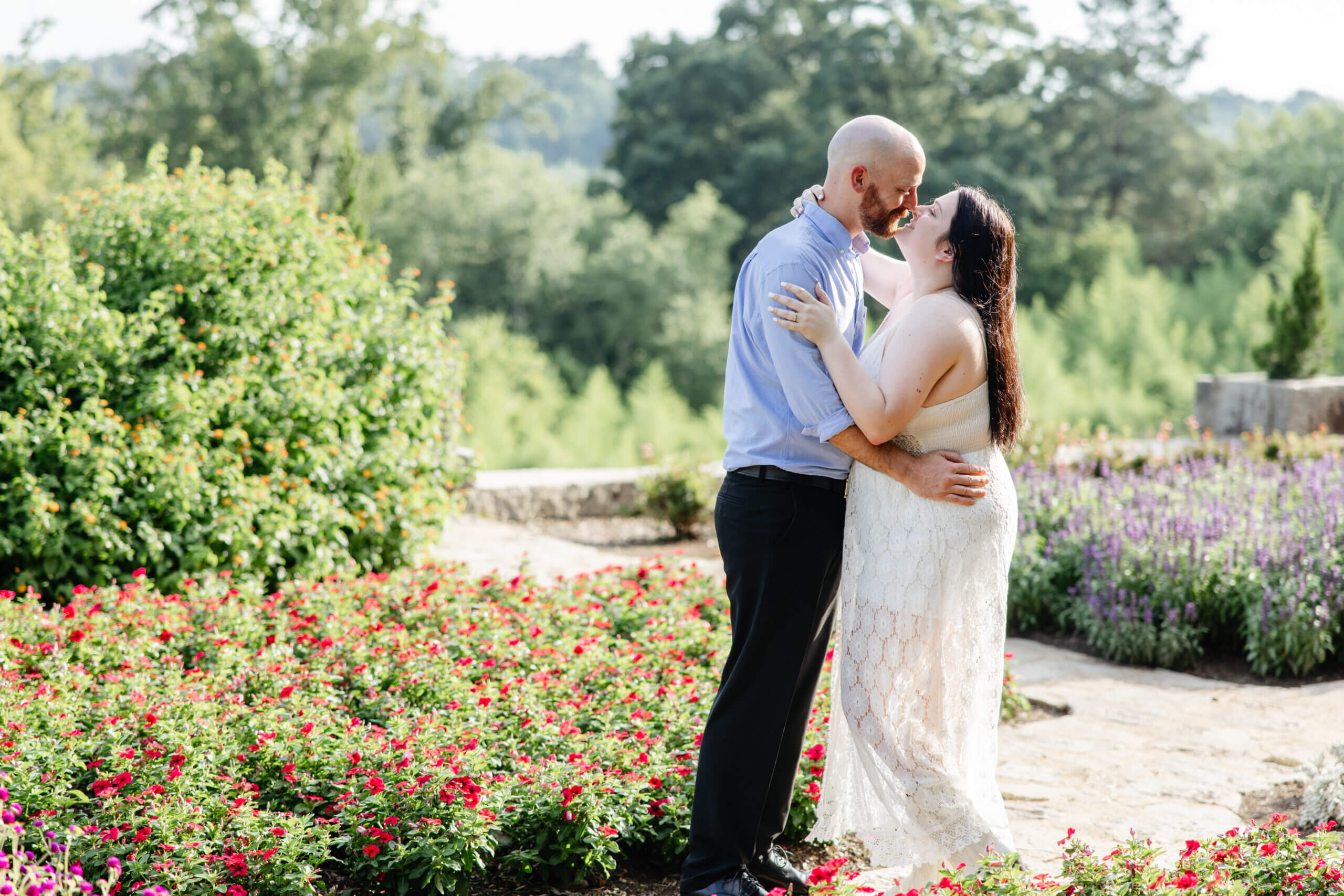 Summer brings the park to life. Vibrant greenery, colorful flowers, and golden evening light create the perfect setting for engagement photos. Additionally, the shade from the trees gives couples space to relax while still enjoying that warm summer glow. As Virginia engagement photographers, we know how well Maymont photographs this time of year.
