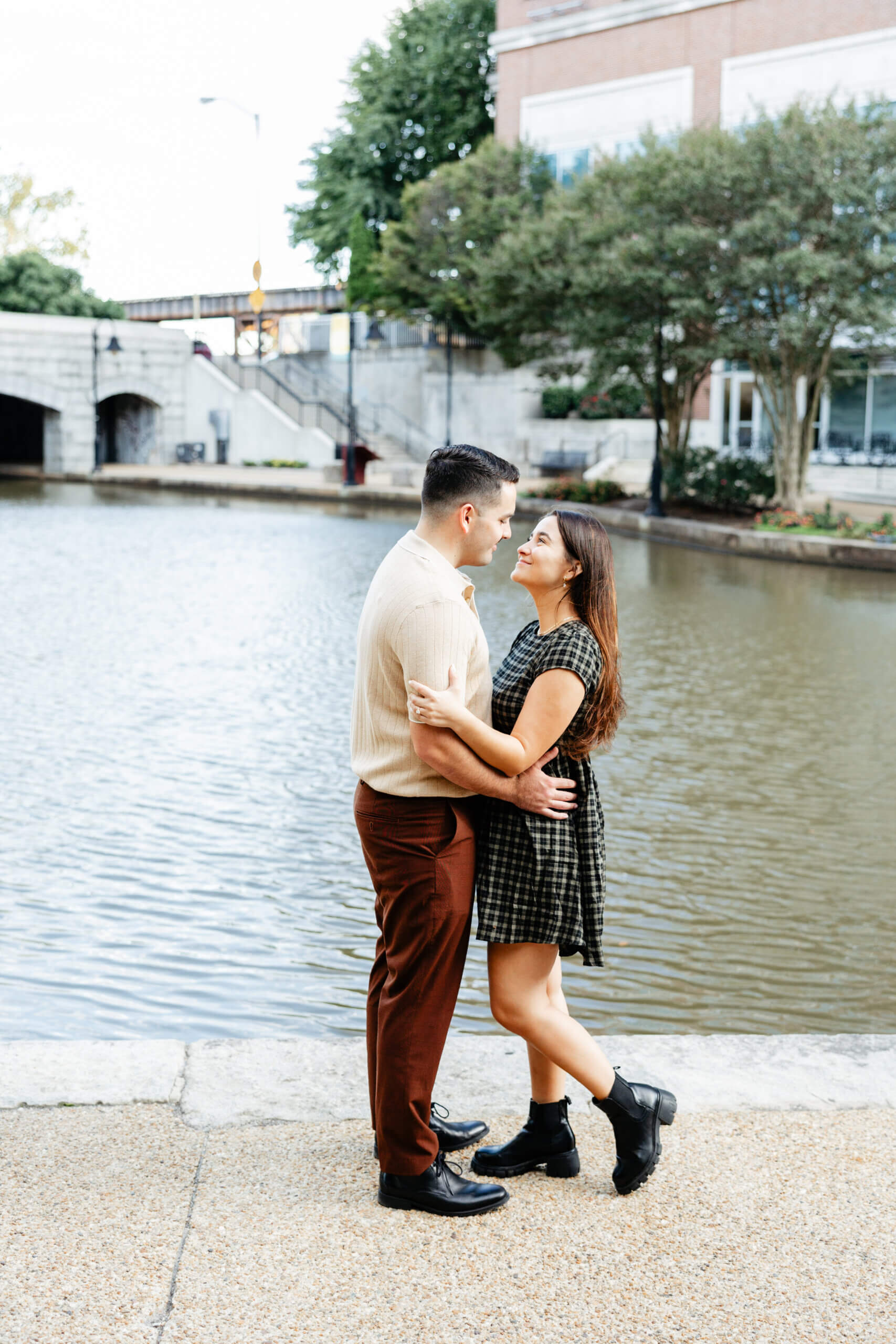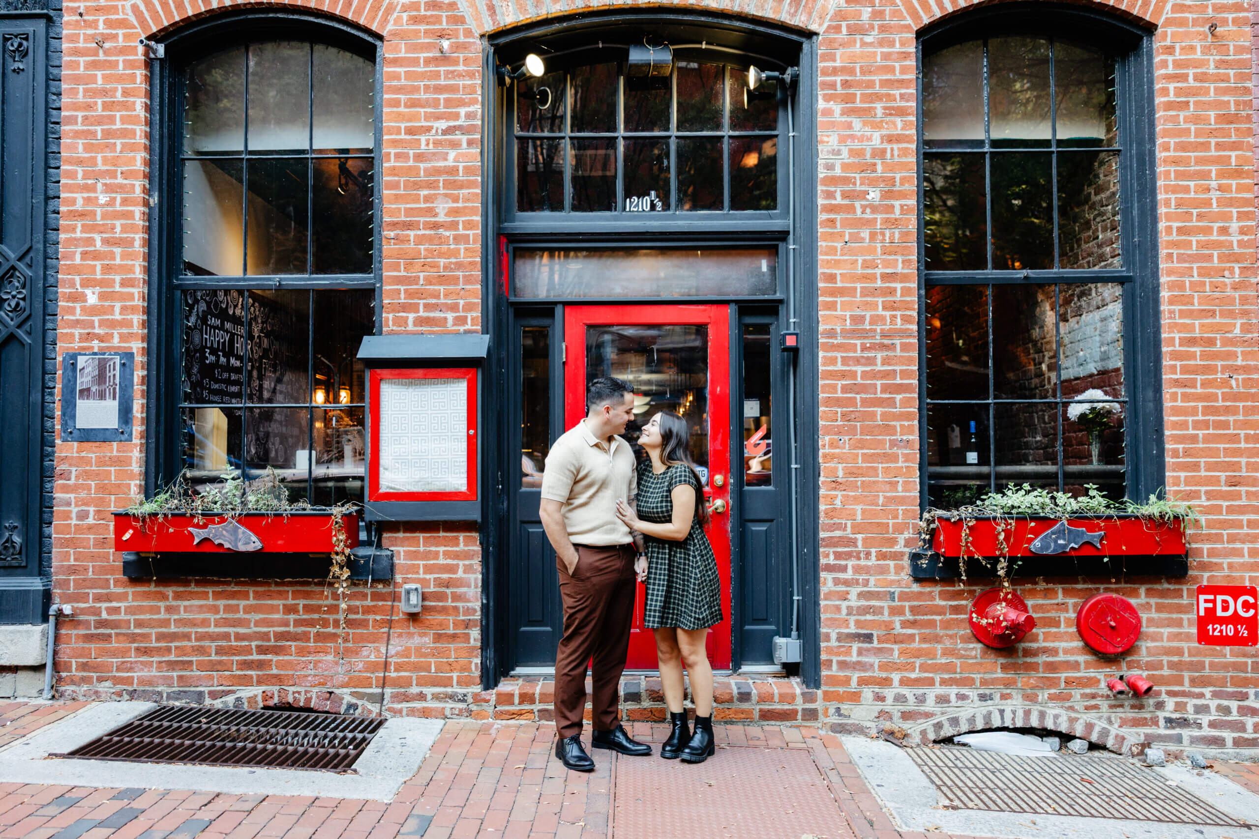 We’ve always loved how the old brick, unique streets, and soft light work together in this part of Richmond. We find so many pockets that help tell a couple’s story in a natural way. Moreover, the fall season brings a calm energy that helps couples ease into their session.