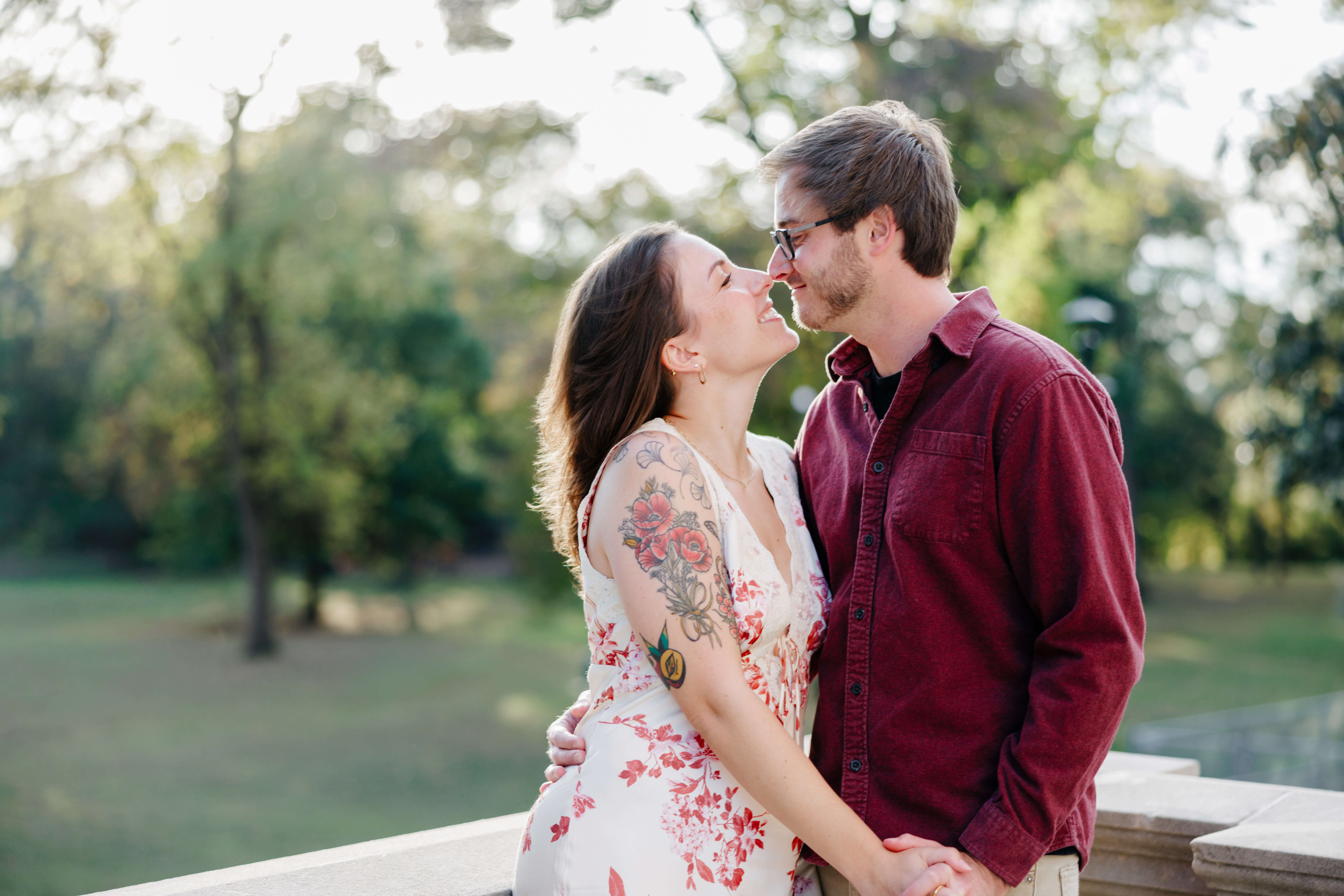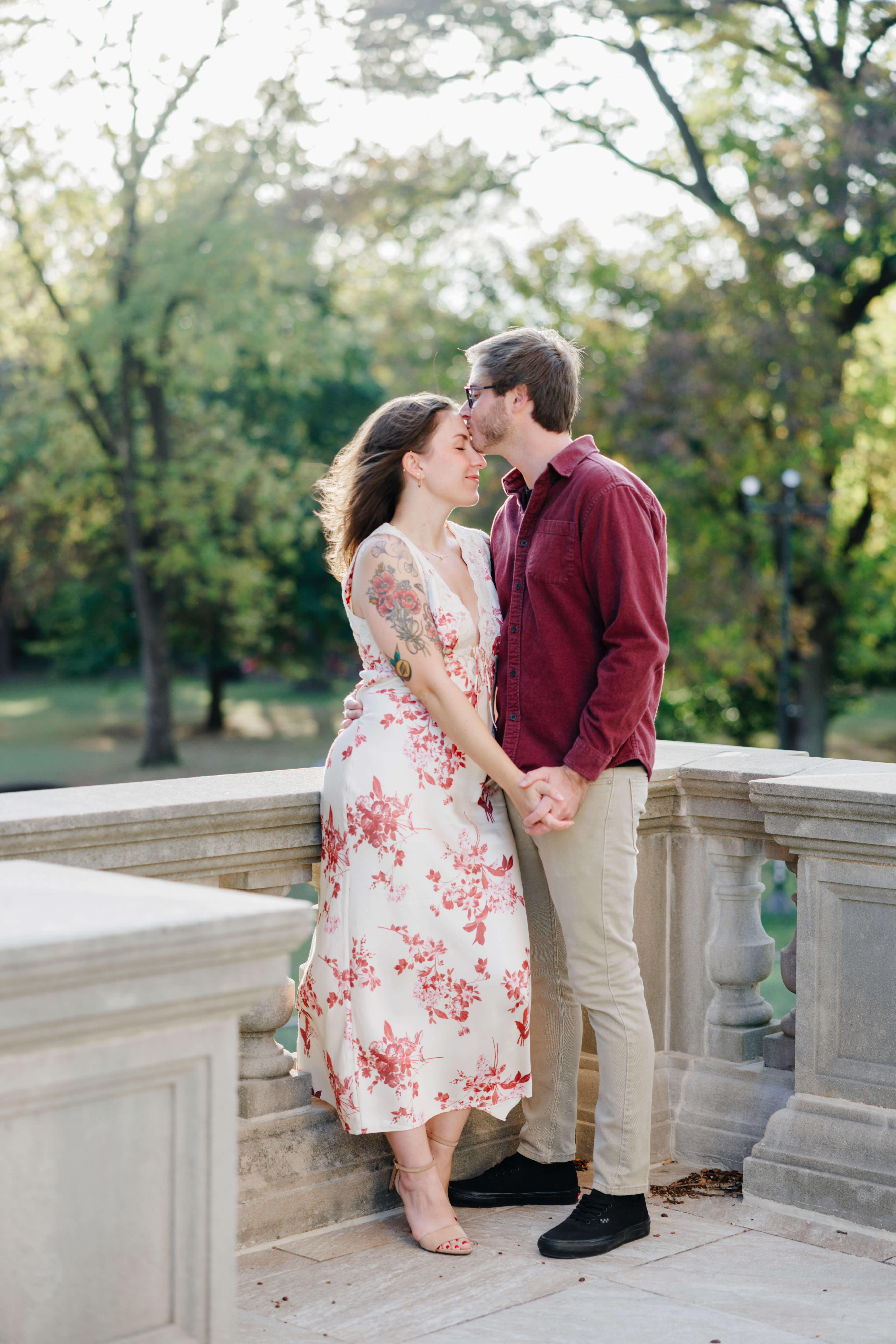 The sunset wrapped around the tower and filtered through the trees as we moved through the park. Because we shoot with both photo and video in mind, we pay attention to how light moves and how moments flow together. That perspective allows The Carillon Fall Engagement Photography to feel cinematic while still staying honest and true to each couple.