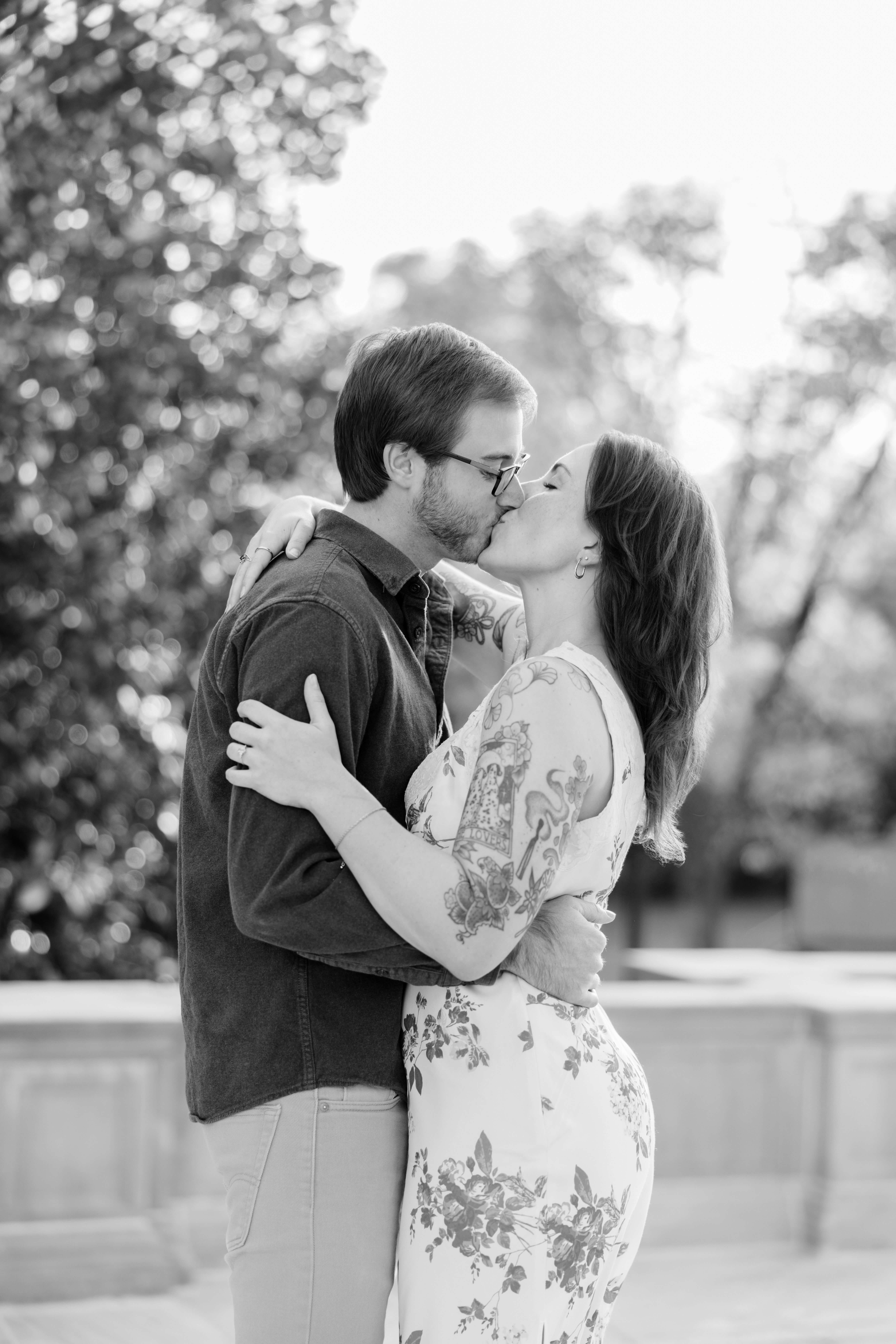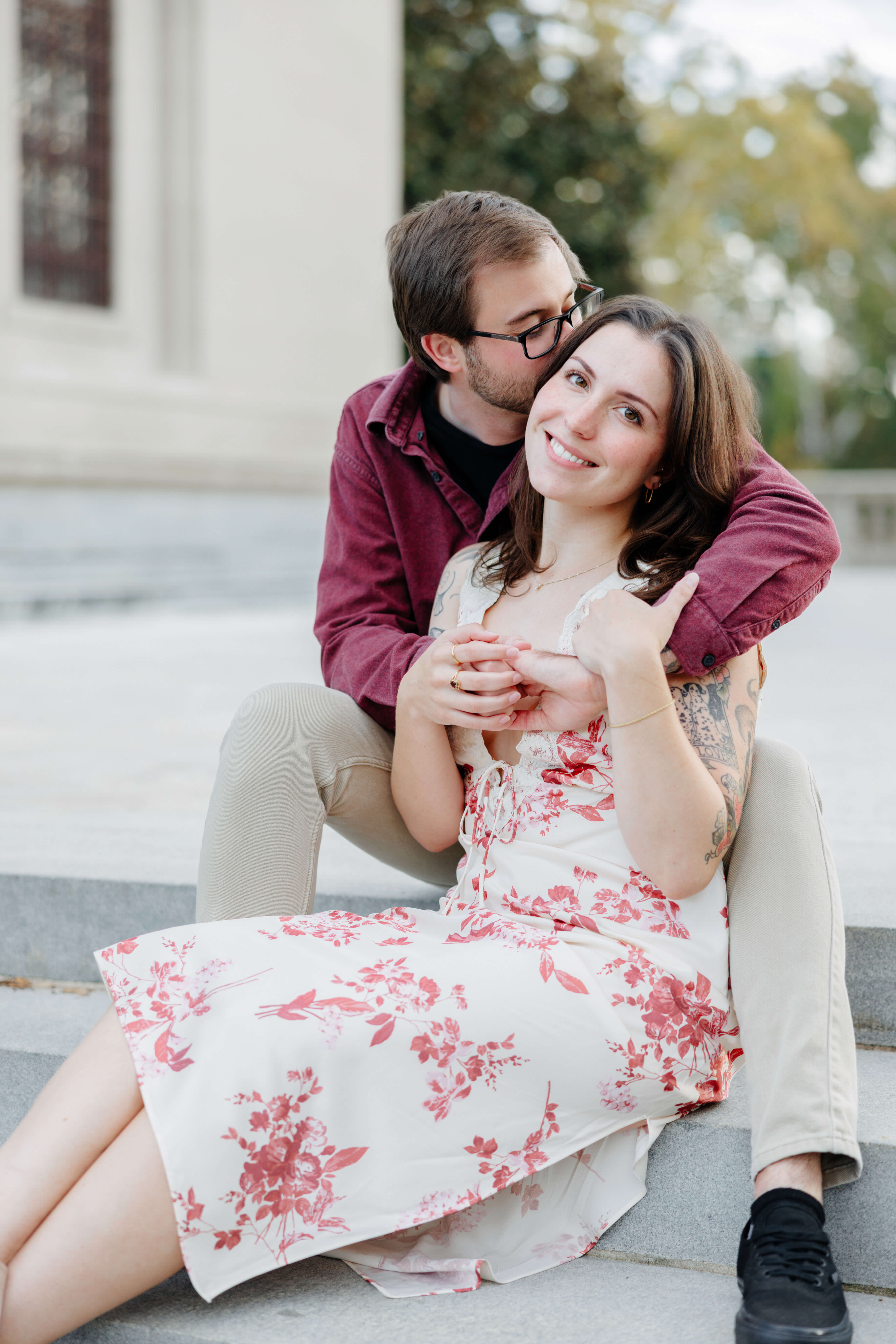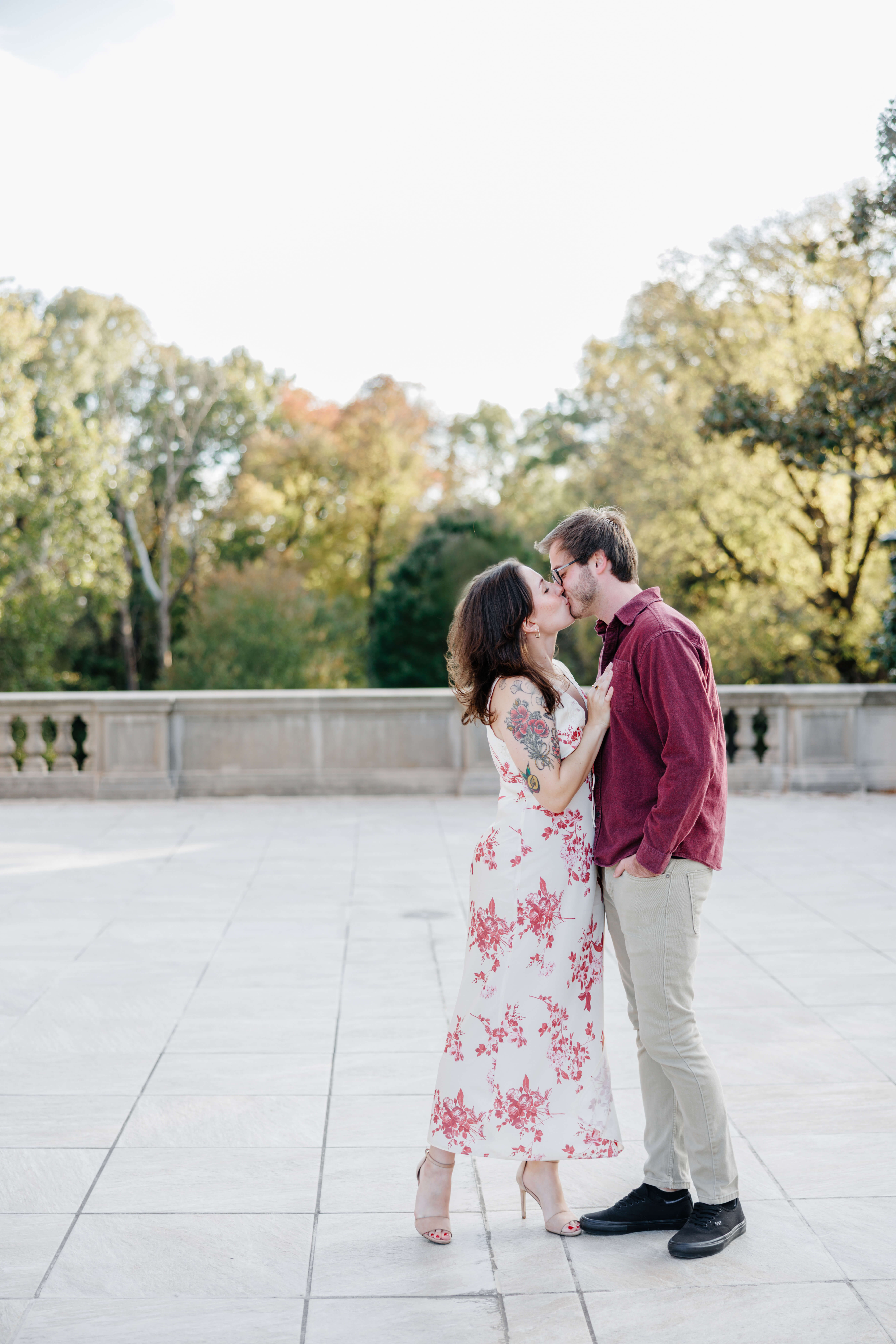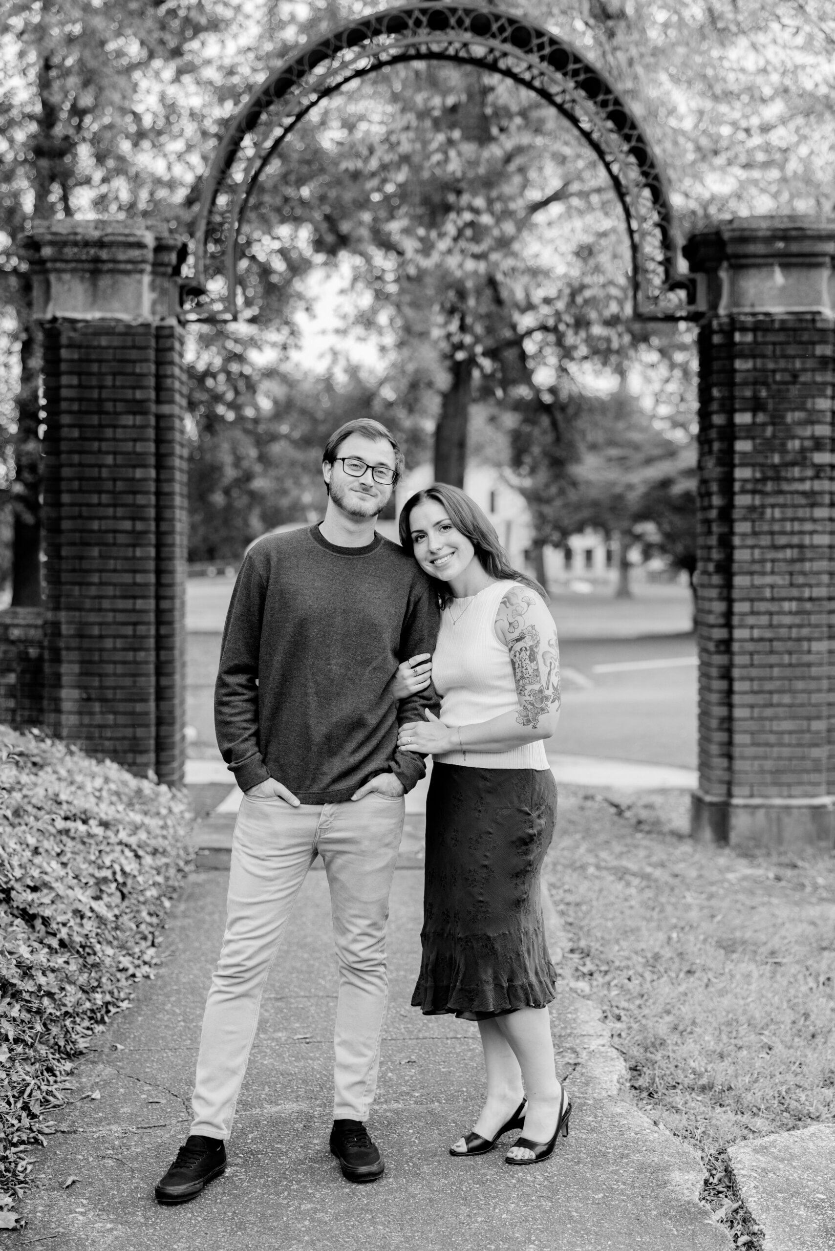 The Carillon is one of our favorite spots for Richmond engagement photography. Because of its tall stone structure and open park views, it gives us variety without ever feeling busy or distracting. We can shoot wide with the tower anchoring the frame, then step into tree-lined paths for something softer and more intimate. As a Virginia engagement photographer, we look for locations that offer depth, texture, and movement all in one place.