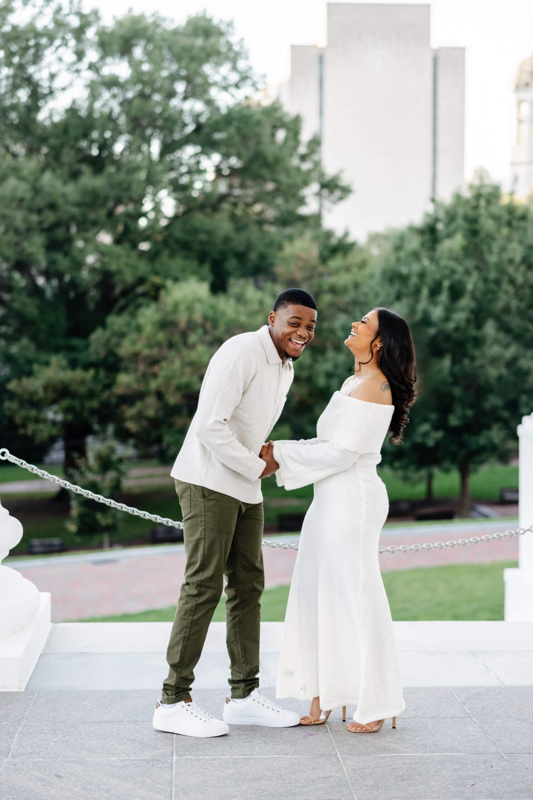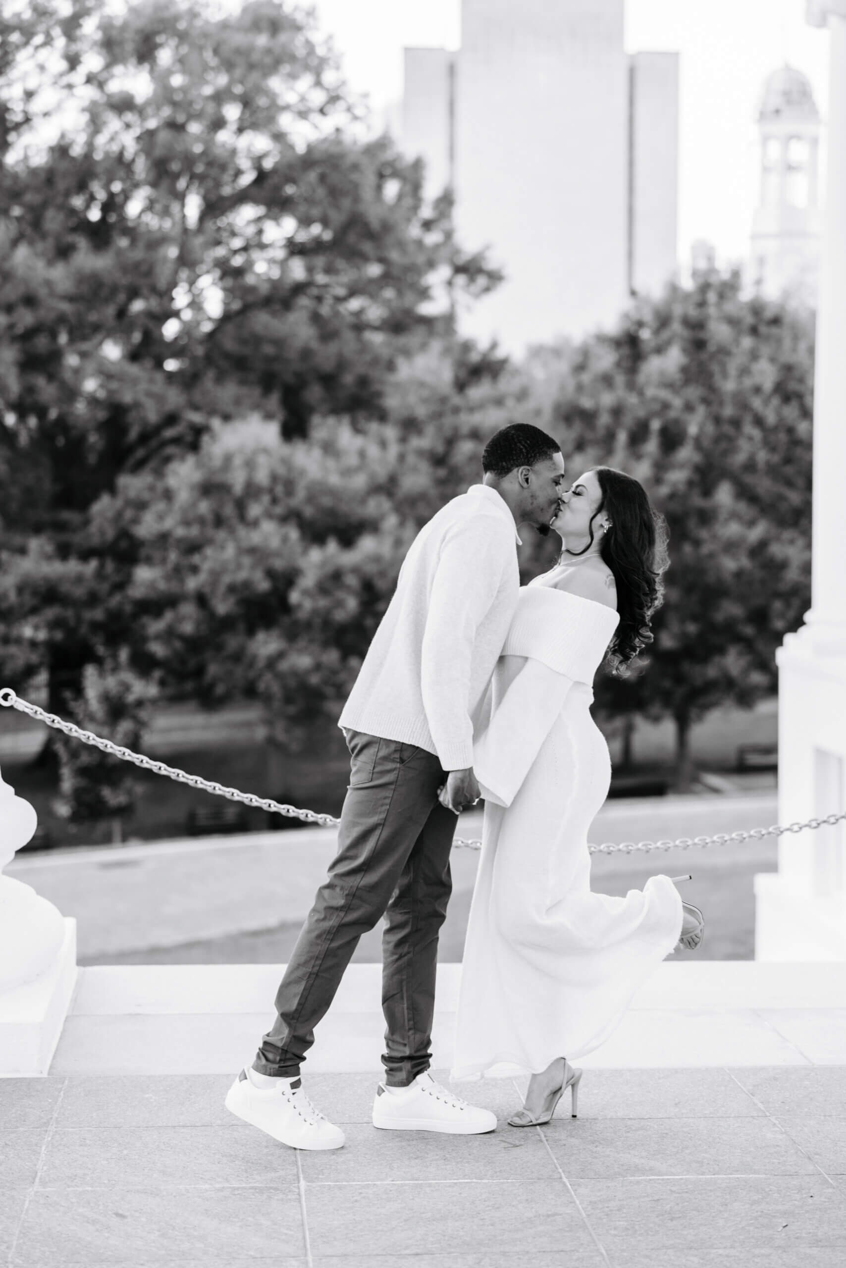 We shoot many sessions in this city, and Richmond never runs out of variety. Parks, hidden corners, and historic buildings give you endless options for tones and moods. Furthermore, the Virginia Capitol stands out in the Fall because the neutral building contrasts with the warm seasonal colors. The way the light hits this area later in the day makes every photo feel inviting. It’s one of the reasons couples often ask us, as their Richmond engagement photographer, to plan sessions here!