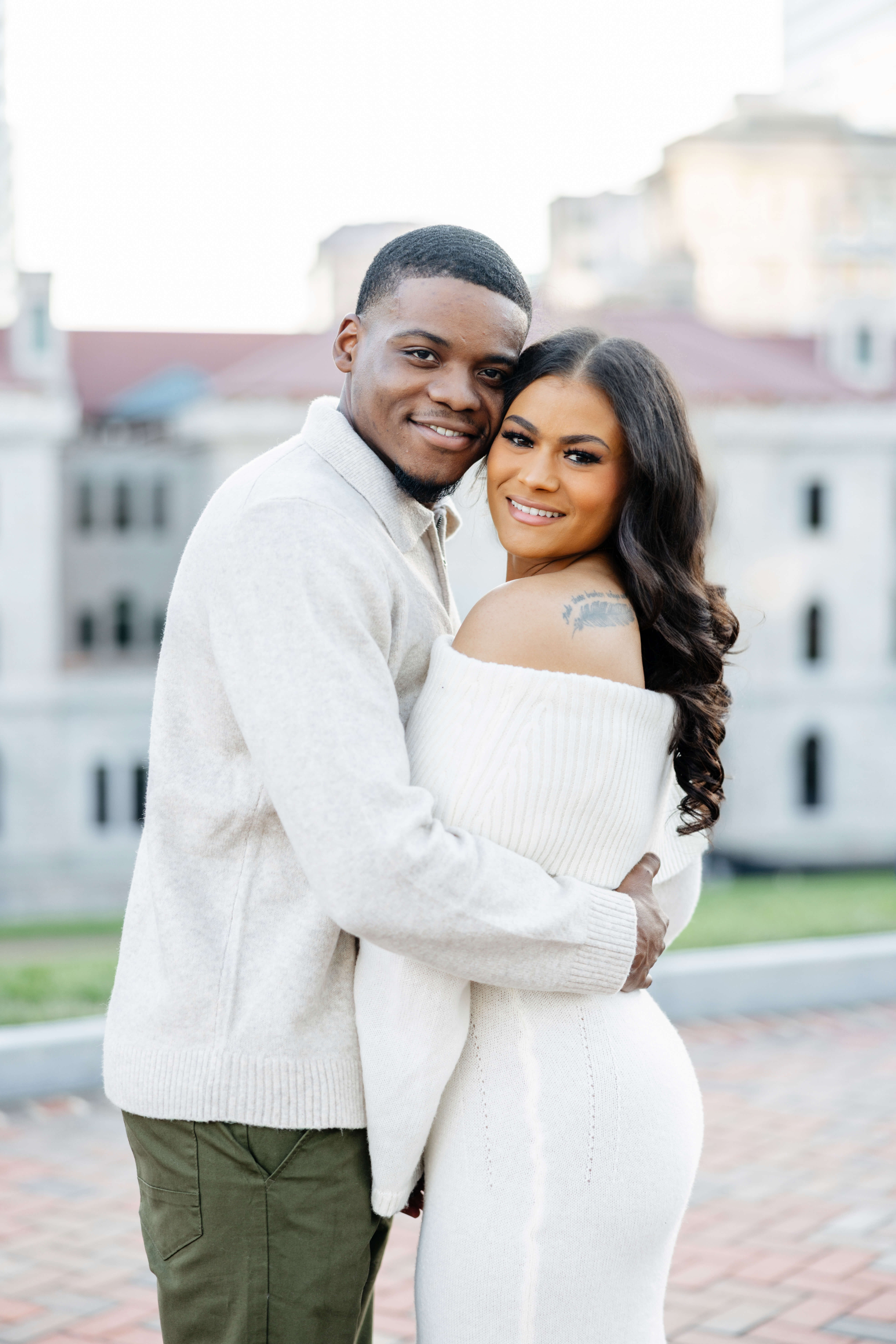 We loved hearing how their story started at work and slowly grew into something real. They began going to church as friends, and that time together helped their connection build in such a natural way. Moreover, the vision for their wedding feels so true to who they are. They’re planning a romantic and cozy day at The Historic Post Office with elegant touches, earth tones, white roses, and plenty of greenery. We can already picture how beautiful that will look!